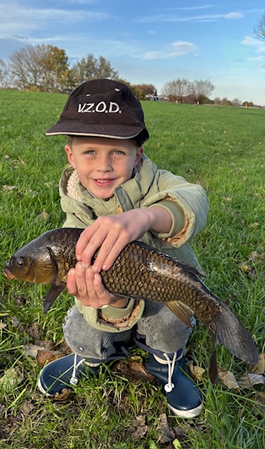 Winnaar van de jeugd foto wedstrijd 2025. Luuk de Boer met zijn gevangen karper aan de Veenpolderdijk.
